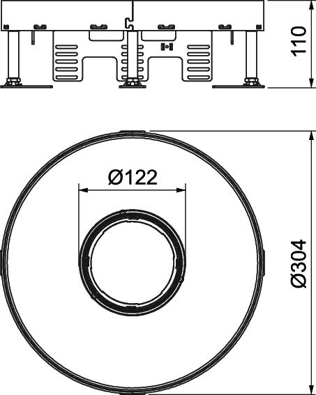 Height-adjustable round cassette, 3-compartment, for tube bodies of nominal size 9 for the intallation of accessories. Cassette for the use in trunking systems and in raised and cavity floors in dry- or wet-cleaned floors in indoor areas.
