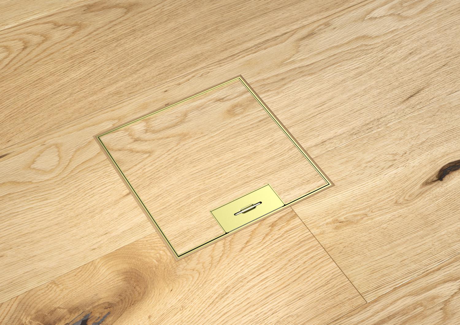 Height-adjustable cassette of nominal size 9 with cord outlet, for the installation of accessories in dry-cleaned floors indoors.