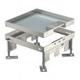 Height-adjustable square cassette, 3-compartment, with cord outlet of nominal size 9 for the installation of accessories. Cassette suitable for the use in trunking systems, raised and cavity floors in dry- and wet-cleanded floors in indoor areas. Suitable only for smooth floor coverings. Three cover plates APMT5 can be installed.
