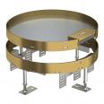 Height-adjustable round cassette, 3-compartment, with cord outlet of nominal size 9 for the installation of accessories. Cassette suitable for the use in trunking systems, raised and cavity floors in dry- and wet-cleanded floors in indoor areas. Suitable only for smooth floor coverings.