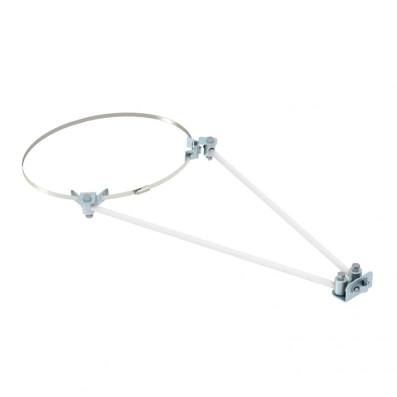 Iso-Combi set, comprising multiple components to maintain the separation distance to electrically conductive parts according to VDE 0185-305-3 (IEC 62305-3) for insulated air-termination devices. To accept interception rods and round cables of 8, 16 and 20 mm diameter. Pipe V fastening, for mounting with tightening strap on pipes with Ø ≤ 600 mm. Including tension jack. UV-stabilised, weatherproof, continuous temperature range -50°C to + 100°C. Material factor km= 0.7.