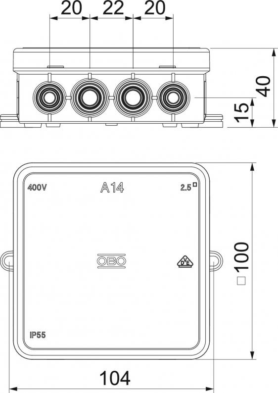 Protection rating IP55, rated voltage 690 V, nominal cross-section 2.5 mm², 8 entries for cable diameter 5‒14 mm