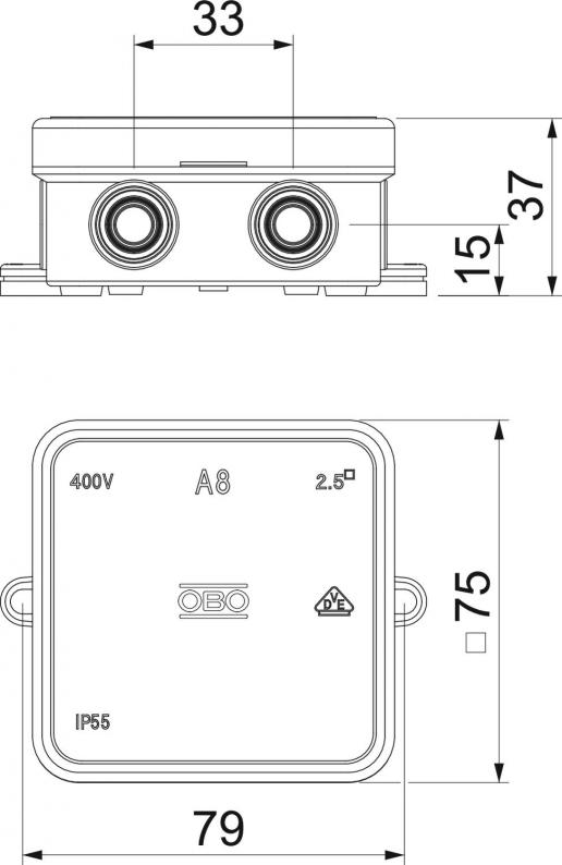 Protection rating IP55, rated voltage 690 V, nominal cross-section 2.5 mm², 7 entries for cable diameter 5‒14 mm.