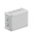 Junction box for the connection of cables and lines indoors and in protected outdoor areas. Rectangular design with plug-in seals to the sides and knock-out entries in the bottom. Suitable for wall and ceiling mounting and on mounting panels. With the option to fasten inside and to mount via the corner domes. Cover with quick lock, sealable. Made from halogen-free and UV-resistant materials.