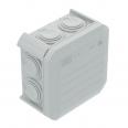 Junction box for the connection of cables indoors and in protected outdoor areas. Square design with plug-in seals to the sides and knock-out entries in the bottom. Suitable for wall and ceiling mounting and on mounting panels. With the option to fasten inside. With fixed clamping cover. Made from halogen-free, UV-resistant materials.