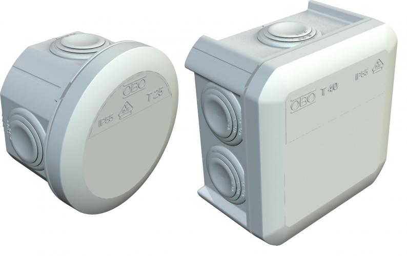 Junction box according to DIN EN 60670. Flame-resistant to DIN EN 60695-2-11, test temperature 960 °C.