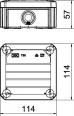 Junction box according to DIN EN 60670. Flame-resistant to DIN EN 60695/2/11, test temperature 650 °C. Impact resistance IK07 according to DIN EN 50102.