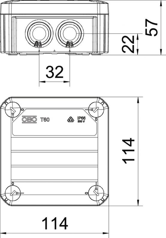 Junction box according to DIN EN 60670. Flame-resistant to DIN EN 60695/2/11, test temperature 650 °C. Impact resistance IK07 according to DIN EN 50102.