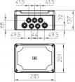Junction box for the connection of cables indoors and in protected outdoor areas. Rectangular design with plug-in seals. Suitable for wall and ceiling mounting, on mounting panels and threads in the floor. With the option of fastening inside and to mount via the corner domes. High, transparent cover with quick lock, sealable. Made from halogen-free, UV-resistant materials.