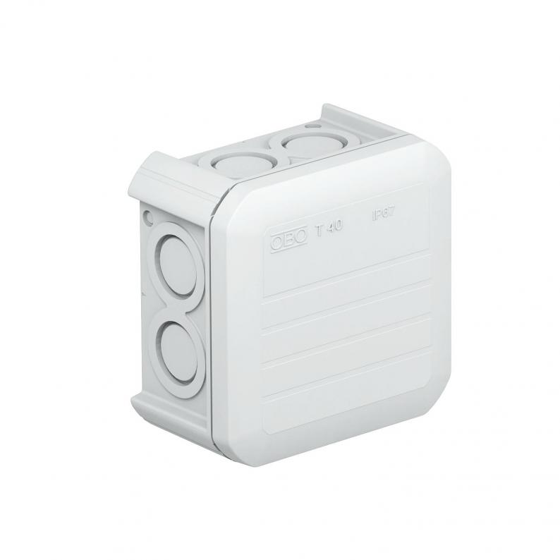 Junction box for the connection of cables and lines indoors and in protected outdoor areas. Square design with knock-out entries to the sides and knock-out entries in the bottom. Suitable for wall and ceiling mounting and on mounting panels. With the option to fasten inside and to mount via the corner domes. With fixed clamping cover. Made from halogen-free and UV-resistant materials. Junction box according to DIN EN 60670. Flame-resistant to DIN EN 60695/2/11, test temperature 650 °C. Impact resistance IK07 according to DIN EN 50102.