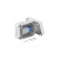 Junction box with terminal for the connection of cables and lines indoors and in outdoor areas. Rectangular design with knock-out entries. Suitable for wall and ceiling mounting with the option to fasten outside, inside or to mount via the corner domes. Particularly impact resistant with IK09. Cover with quick lock, sealable. Made from halogen-free and UV-resistant materials.