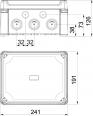 Junction box according to DIN EN 60670. Flame-resistant to DIN EN 60695/2/11, test temperature 650 °C. Impact resistance IK09 according to DIN EN 50102. Protection rating IP67 according to DIN EN 60529.