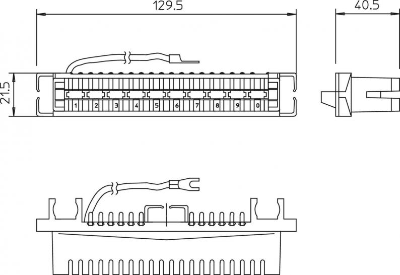 LSA Plus earthing strip, for earthing 34 cables. With connected