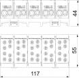 5-pin main terminal block, 2 x 35 mm² + 2 x 25 mm² conductor connection cross-sections per pin. With 2 screws per terminal for secure contact pressure. High-resistance quick-action fastening made of galvanised sheet steel for simple mounting on support rails.