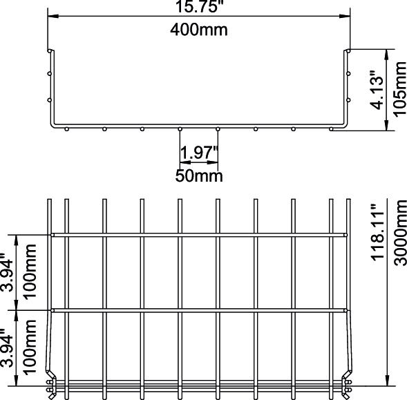 No additional connection components are required for the mesh cable tray, it is simply interlocked. The grid width is 50 x 100 mm.