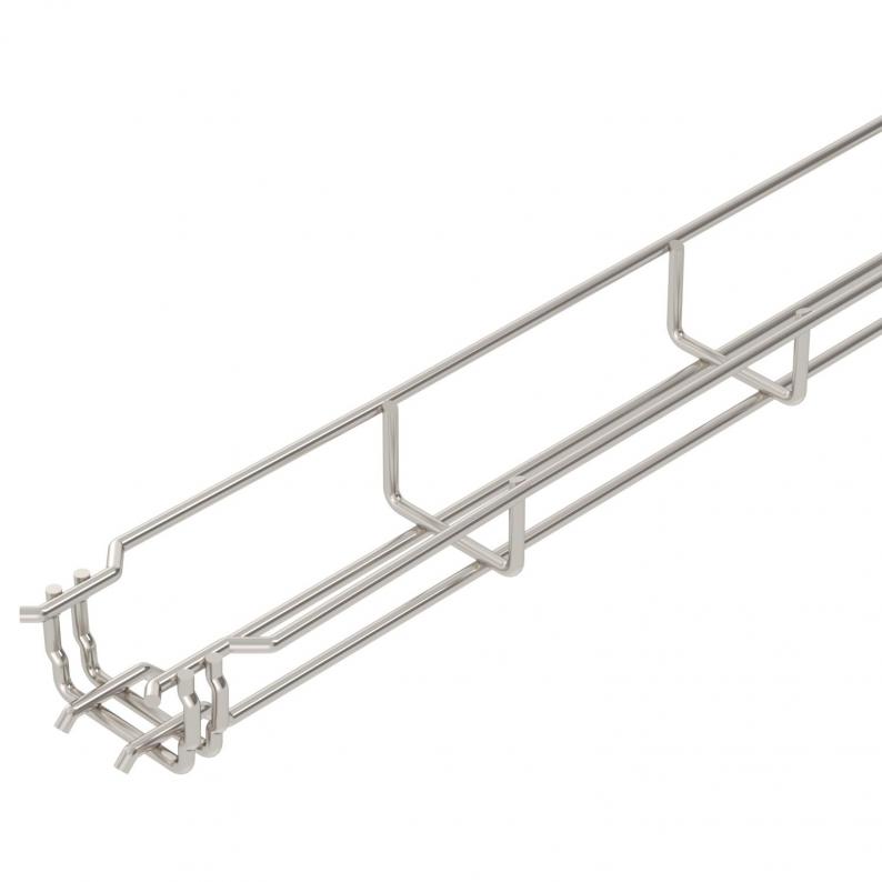 No additional connection components are required for the mesh cable tray, it is simply interlocked. The grid width is 50 x 100 mm (exception: GRM 35/50 = 20 x 100 mm).