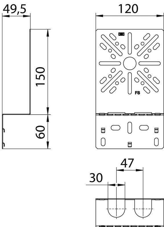 Angled mounting plate, for fastening on the side rail of the cable tray.