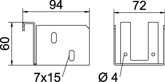 Add-on tee for horizontal use on luminaire trays of 60 mm side height.