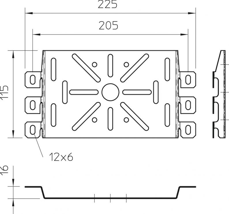 Mounting plate for universal use on side rails of cable trays and mesh cable trays.