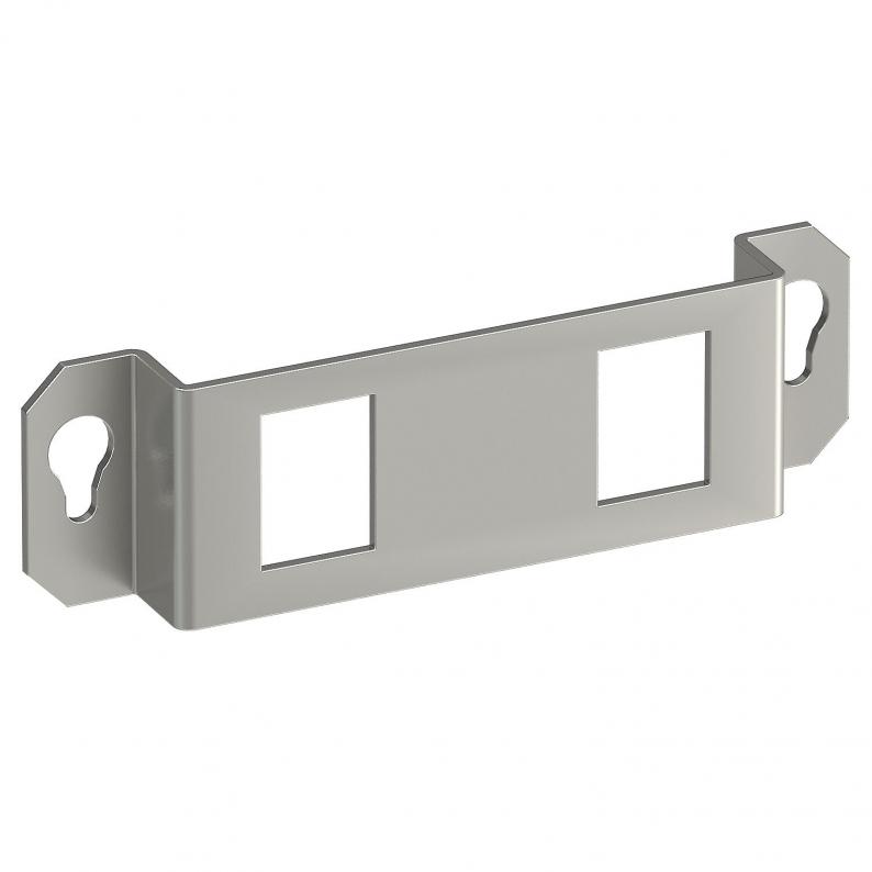 Mounting support to accept two data connection modules of the following types: Brand-Rex: shielded; EKU: E-Stone; Dätwyler: KS-T, MS-K and KU-T module; R&M: Snap-In and Keystone; Rutenbeck: UM and UMflex; SETEC: MKJ, UKJ and XKJ; Siemon TERA; Telegärtner: AMJ and UMJ.