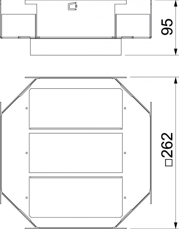 Mounting support for receiving three APMT5 cover plates, which aid the installation of accessories of British Standard design beneath frame cassettes in the UZD250-3 underfloor junction and branch box.