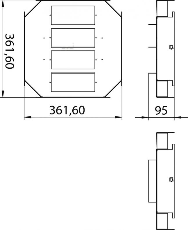 Mounting support for receiving four APMT5 cover plates, which aid the installation of accessories of British Standard design beneath frame cassettes in the UZD350-3 underfloor junction and branch box.