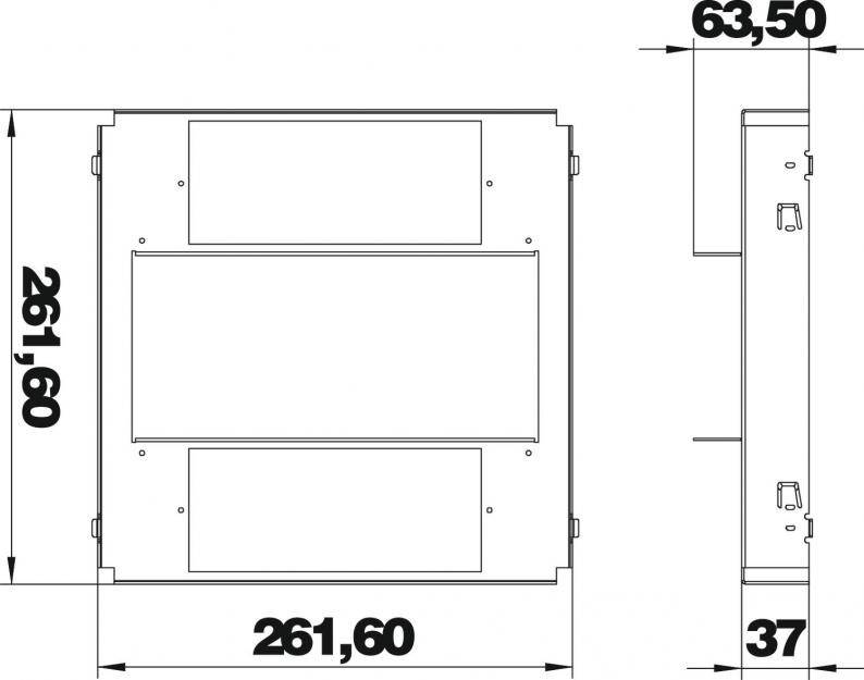 Mounting support for mounting three APMT5 cover plates, which aid the installation of accessories under RKF frame cassettes in the UZD250-3 underfloor box.