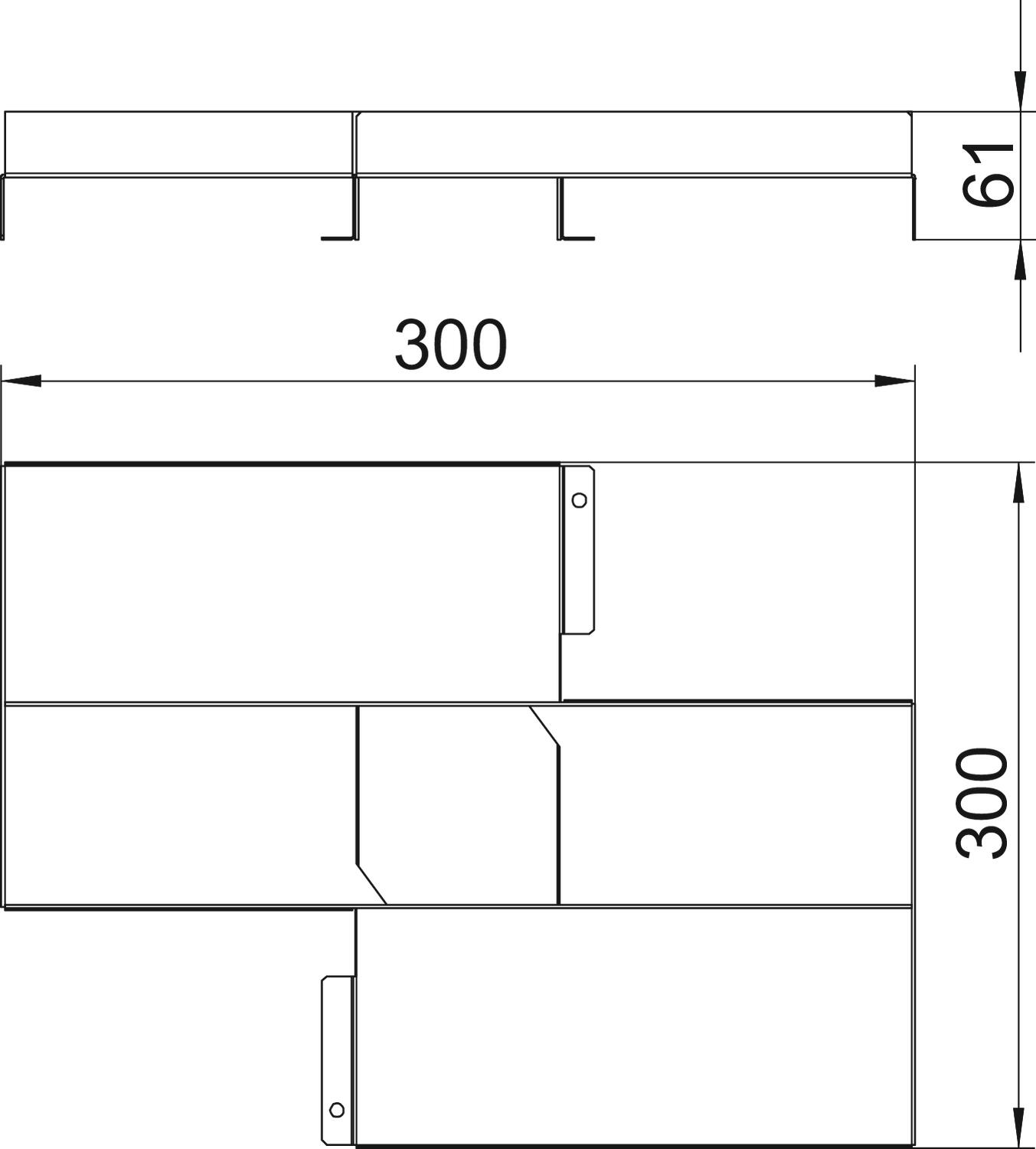Separating element for a three-compartment cross branch of OKA-T flushfloor trunking systems of width 300 mm.