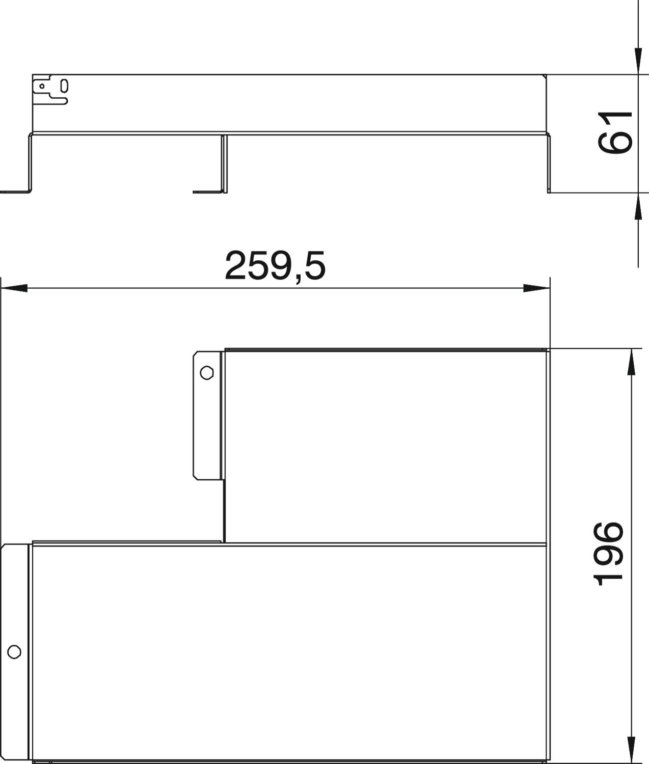 Separating element for a three-compartment T branch in an OKA-T flushfloor trunking system for branching trunking of width 300 mm.