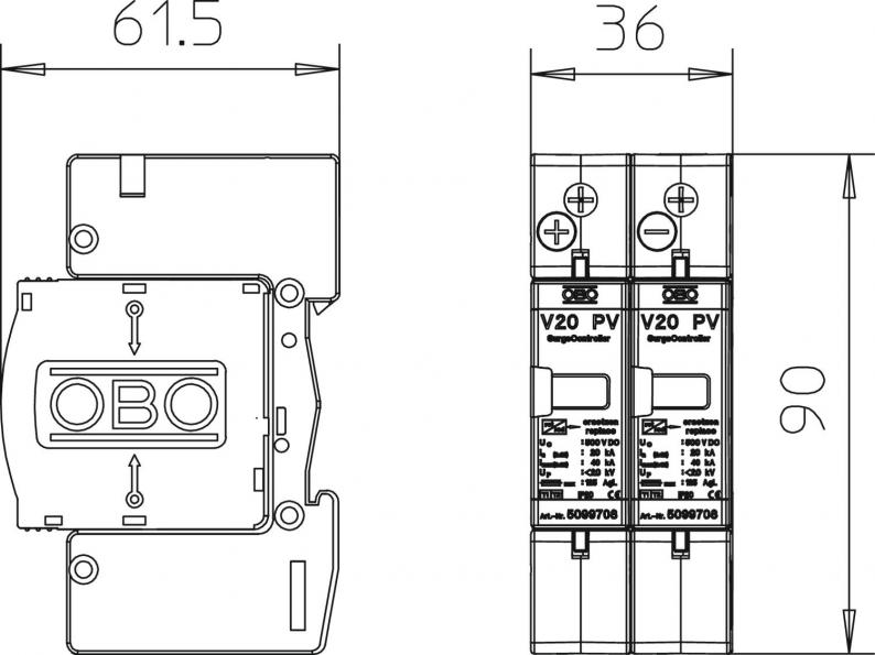 V20 surge arrester, Type 2, for earthed photovoltaic systems