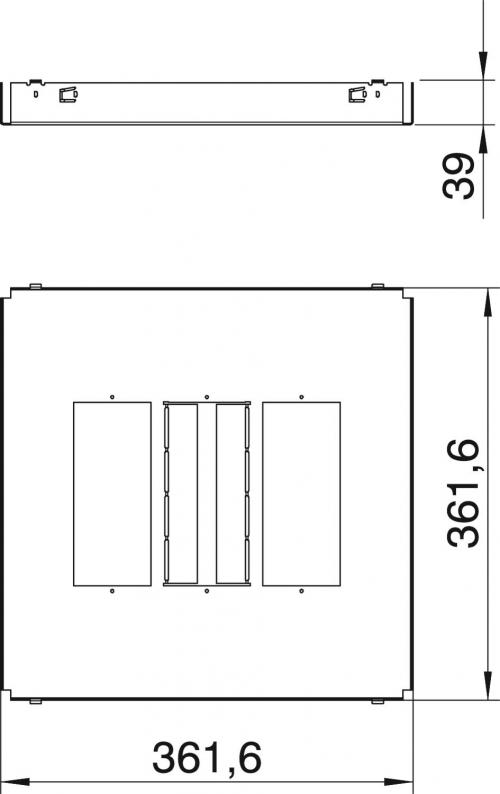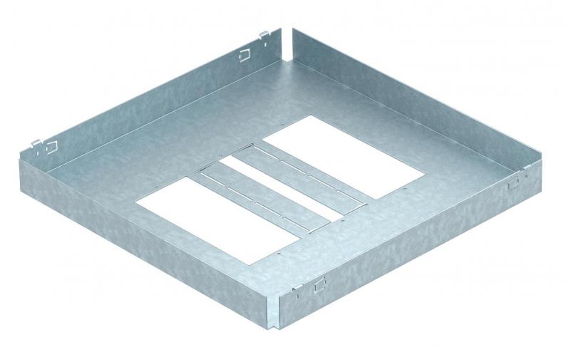 Mounting support for mounting three APMT5 cover plates, which aid the installation of accessories under RKS frame cassettes in the UZD350-3 underfloor box.
