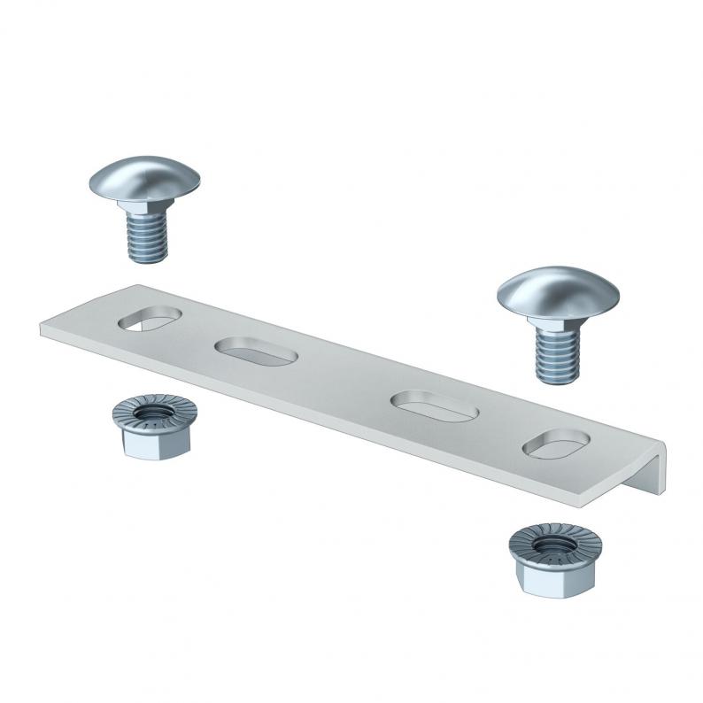 Straight connector for straight connection of cable trays, according to the marine standard, and fittings with a side height of 15 mm.