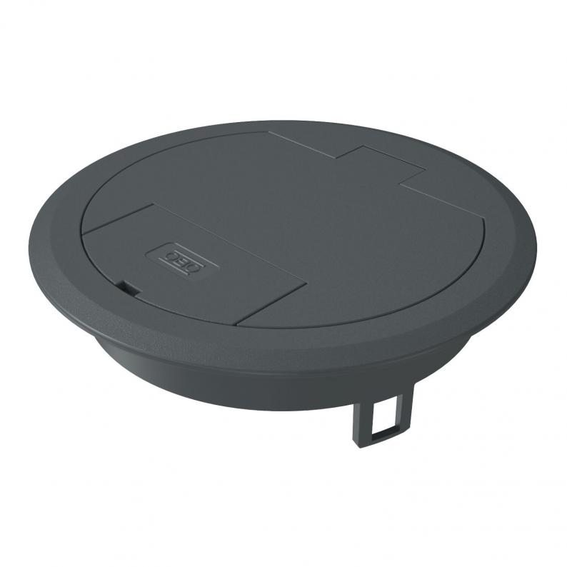 Service outlet with hinged cover and cord outlet for GES R2 floor socket for direct installation in the MT R2 installation socket.