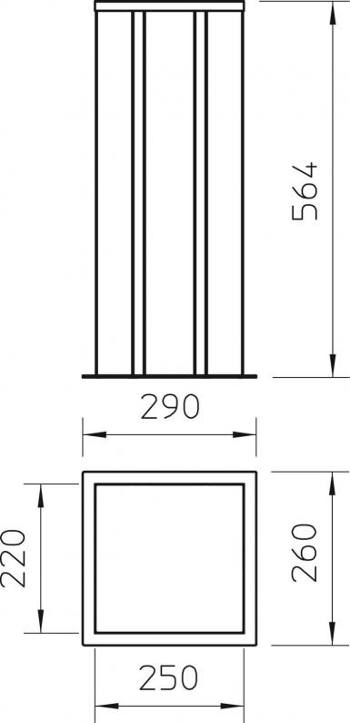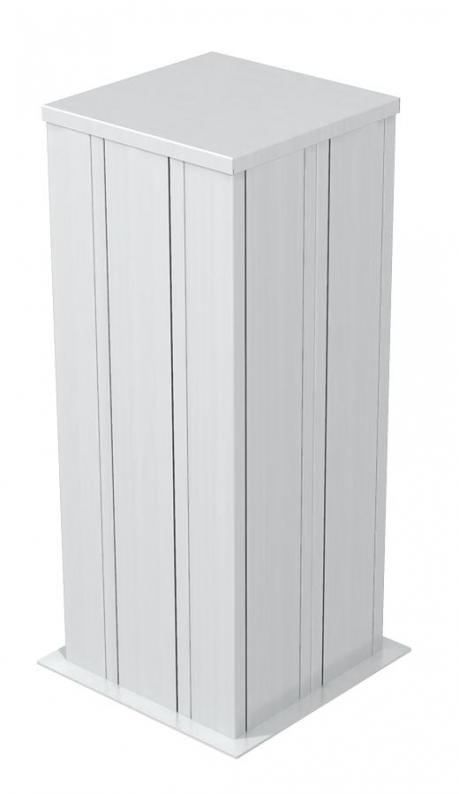 Empty, can be equipped from all four sides with standard devices (socket, telephone, etc.). Two sides of the installation centre can be equipped in two compartments, the other two sides in one. Each installation compartment can accept 5 devices, the entire installation centre accepts max. 30 devices. Direct fastening on floor possible. Accessory mounting boxes to be ordered separately.