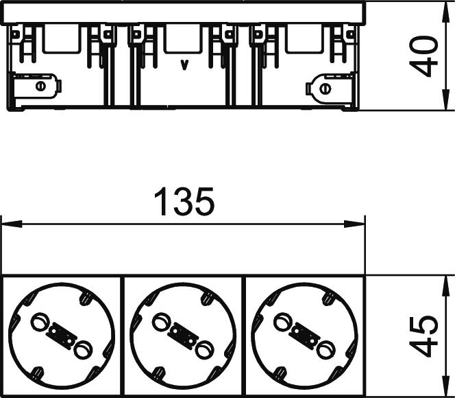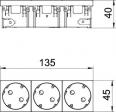 Protective contact socket triple 33°, with increased touch protection, with screwless terminals, 2-pin, 16 A, 250 V~, with connection terminals to IEC 60884-1.