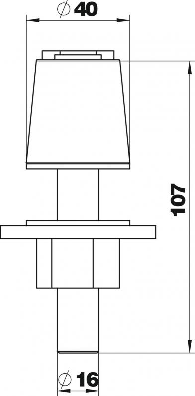 Stainless steel fastening stand for fixed mounting of a Deskbox type DB-... on a tabletop. It is mounted using a drill hole (Ø16 mm) in the tabletop.
