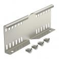 Angle connector as external connector to join cable ladders and fittings with a side height of 110 mm and continuous rail perforation.