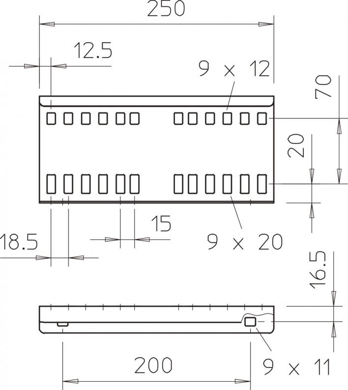 Straight connector as external connector to connect cable ladders and fittings with a side height of 110 mm.