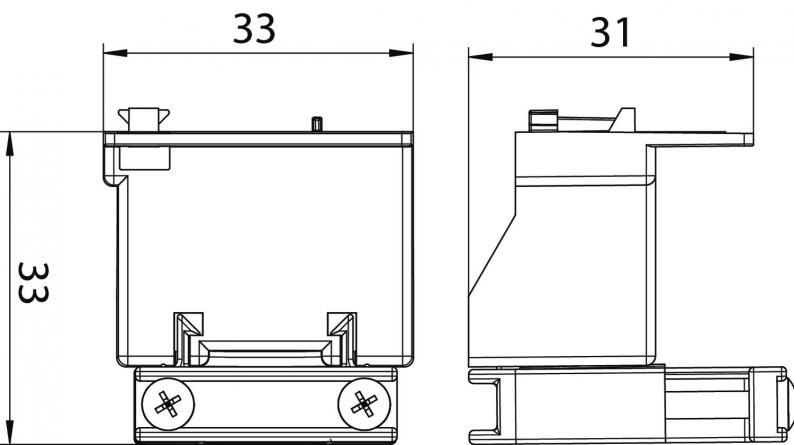 Strain relief for Modul 45 sockets, type STD, connectable at side, for the fastening of a 3-core cable, max. Ø 10 mm, suitable for protective contact sockets at direction of insertion 0° and sockets with earthing pin at direction of insertion 0°.