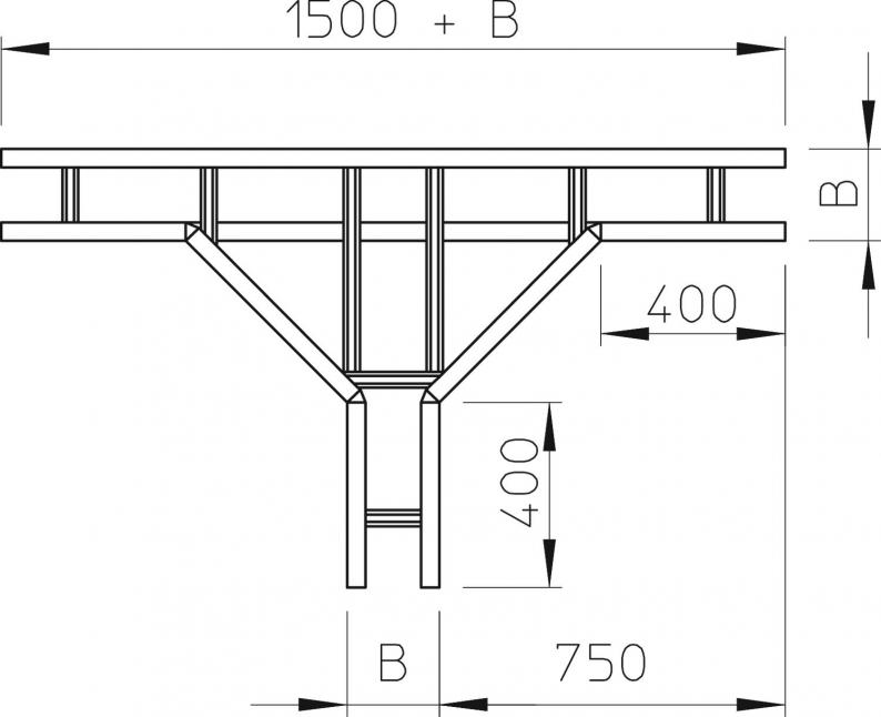 T piece, horizontal, for all wide span cable ladders of 200 mm side height.