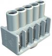 Terminals and screws made of steel, galvanised and transparent-chromated, nominal cross-section 1 ÷ 4 mm², rated voltage 400 V, five-pole, with socket terminals, max. connectable cross-sections per terminal: 4x2.5 mm², 5x1.5 mm² or 6x1 mm².