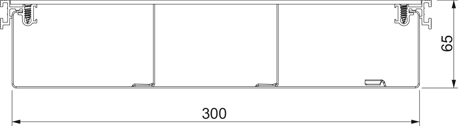 3 compartment flush floor trunking with 3 blind lids. Trunking unit consists of trunking connectors, fixing brackets and separating retainers.