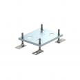 Square floor socket for use in dry-care cavity and screed floors in indoor areas. Installation housing with pre-marked insertion openings for pipes (M20/M25). Cover adjustable to top edge of floor covering using four height-adjustment supports. The minimum installation depth is 100 mm, the height-adjustment range 35 mm.Frame and cover made of stainless steel and visible in the floor covering. With 2 Modul 45® sockets in the mounting support and an optional data technology support for up to 2 data connection modules.