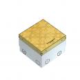 Square floor socket for use in dry-care cavity and screed floors. Installation housing with pre-marked insertion openings for pipes (M20/M25). Cover adjustable to top edge of floor covering using four height-adjustment supports. The minimum installation depth is 100 mm, the height-adjustment range 35 mm.Frame and cover made of brass and visible in the floor covering. Cover with Oriental decorative plate. Empty housing for up to 2 Modul 45® devices in the mounting support and 2 data sockets in the optional data technology support.