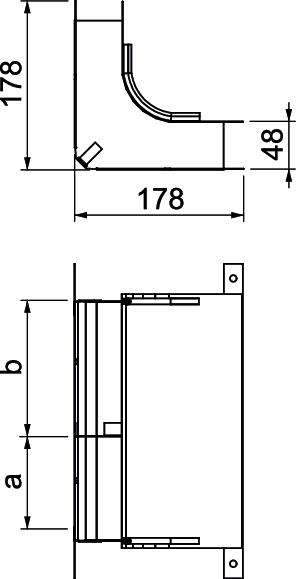 Vertical bend, two-compartment, for vertical direction changes of screed-covered underfloor ducts (wall connections, supplies).