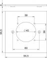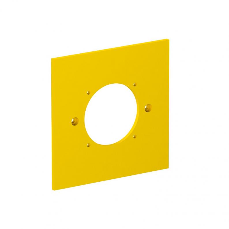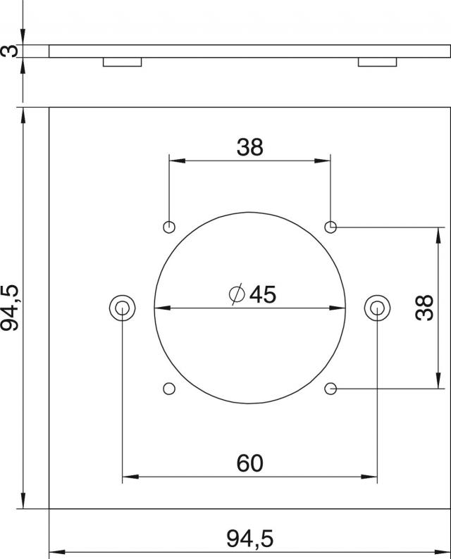 Cover plate with opening for the installation of a socket with 38 x 38 mm fastening system.