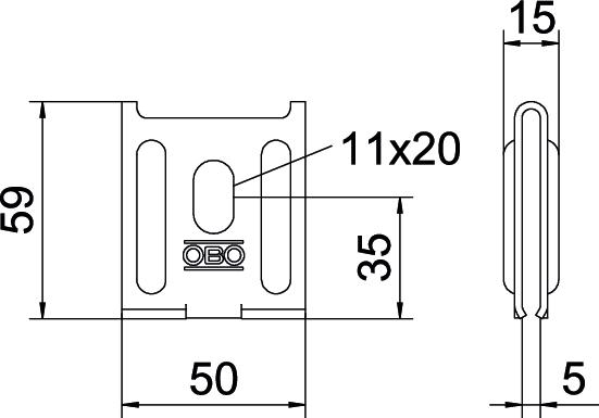 Wall fixing for direct fixing of mesh cable trays of side height 55 mm on the wall.