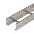Wide span cable ladder with perforated side rails of side height of 110 mm. Fastening of cables with clamp clip, type 2056.