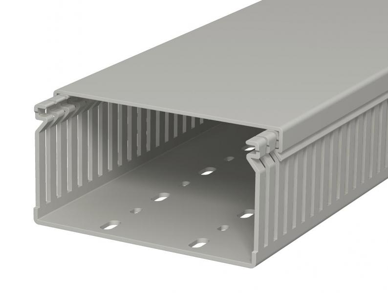 Wiring duct, incl. cover and base perforation, for horizontal and vertical routing of electrical cables in the switchgear cabinet. Designed as a metric duct. The nominal dimension of the system size corresponds to the internal dimension of the duct. Retainers are broken out without tools. The flush-floor routing of cables is possible through predetermined break points. Tested to DIN EN 50085-2-3. Special lengths on request.