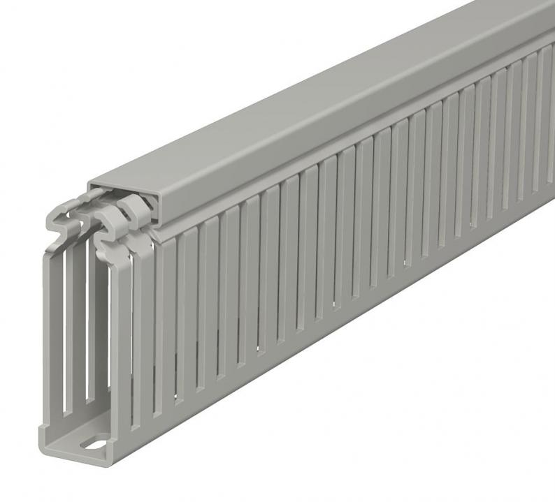 Wiring duct according to DIN EN 50085-2-3, incl. cover and base perforation, for horizontal and vertical routing of electrical cables in the switchgear cabinet. Designed as a DIN duct. Retainers are broken out without tools. The flush-floor routing of cables is possible through predetermined break points. Tested to DIN EN 50085-2-3. Special lengths on request.